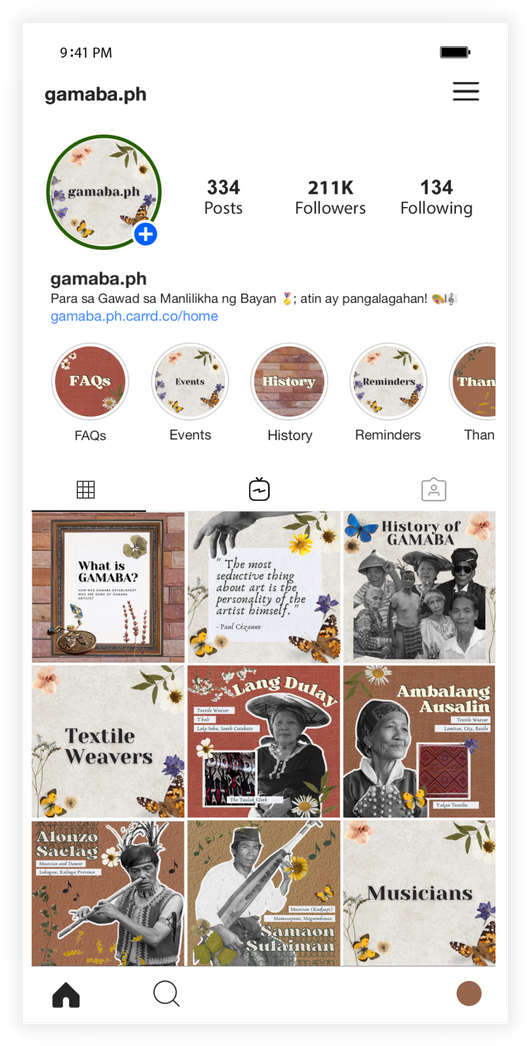 gamaba.ph is a mock-up initiative to increase exposure of GAMABA (Gawad sa Manlilikha ng Bayan) artists throughout the country.